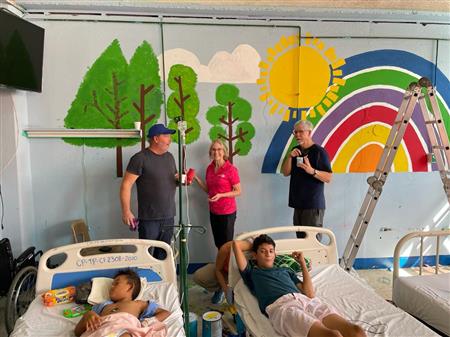 Members travel to Guatemala to install 3 Sunspring / Wallspring clean water purification systems, distribute 1700 pair of reading glasses, distribute knit caps to newborn ICU unit, and paint some graphics in Escuintla Regional Medical Center