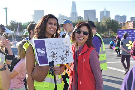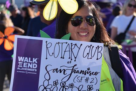 Rotarians from the bay area supported the Walk to End Alzheimer's in San Francisco, with special walker Past RI President Jennifer and her husband Dr. Nick